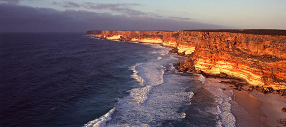 The stunning coastline of the Great Australian Bight is characterized by cliff faces up to 200 feet high, spectacular surfing beaches and rock platforms, exquisite for whale-watching. Photo credit: australiangeo.weebly.com